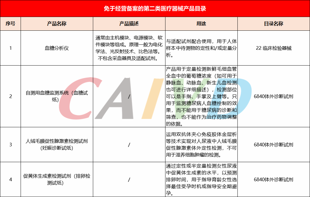 為貫徹實施《醫(yī)療器械監(jiān)督管理條例》,國家藥監(jiān)局組織制定了《免于經營備案的第二類醫(yī)療器械產品目錄》,具體產品見附件,F予以公布。其中體外診斷試劑與臨床檢驗器械如下: