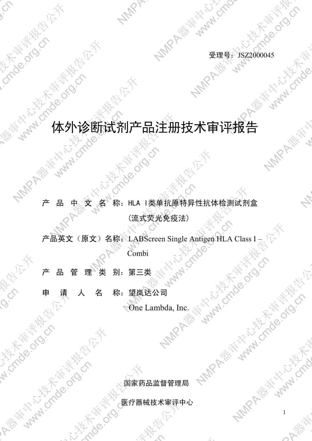 技術(shù)審評(píng)報(bào)告:HLA I類單抗原特異性抗體檢測(cè)試劑盒(流式熒光免疫法)