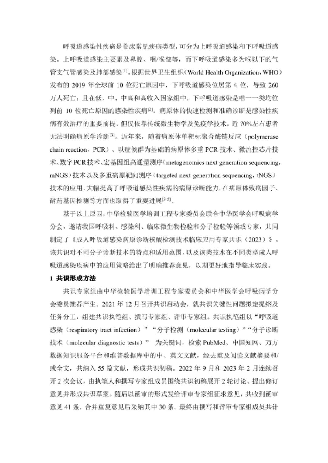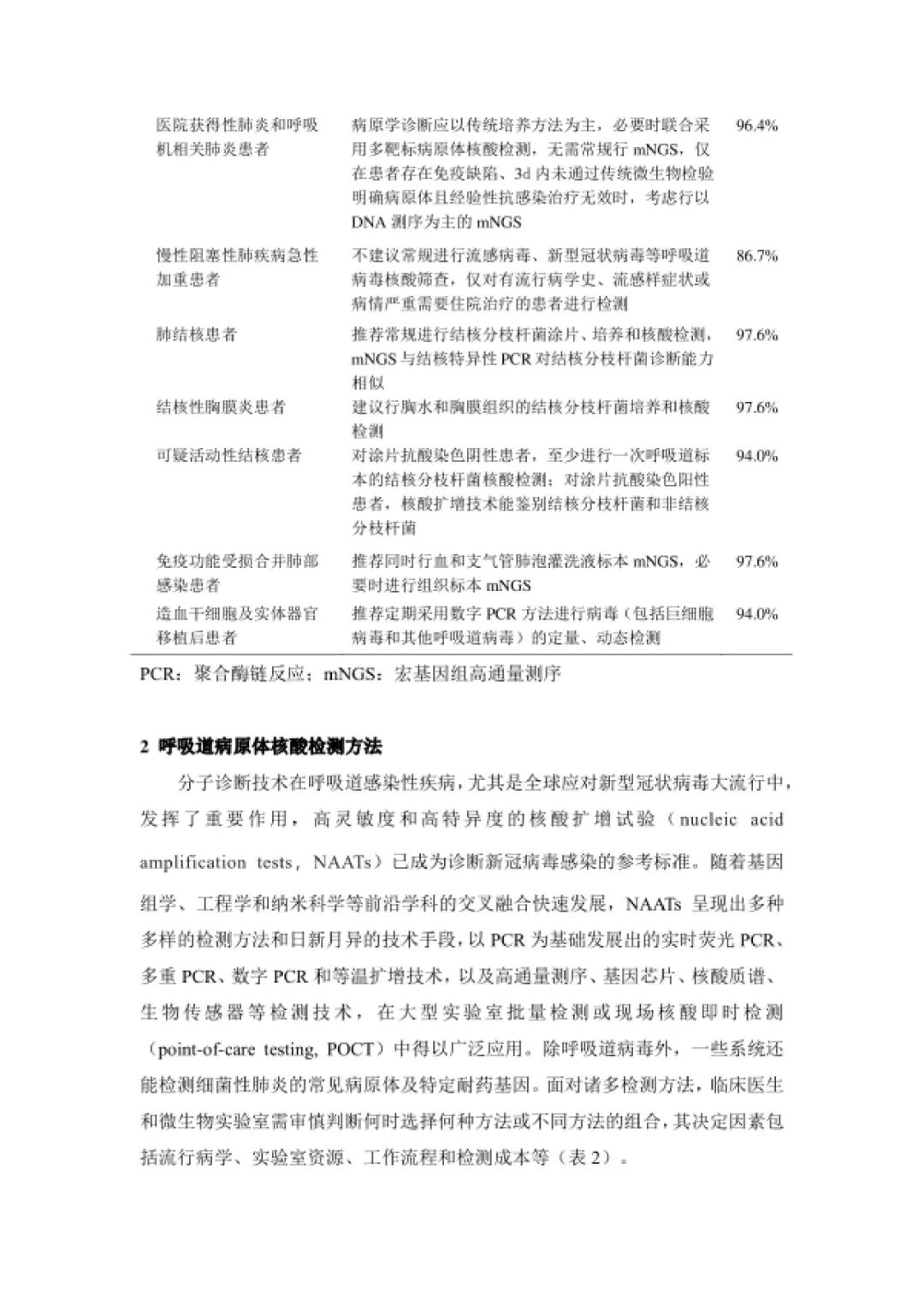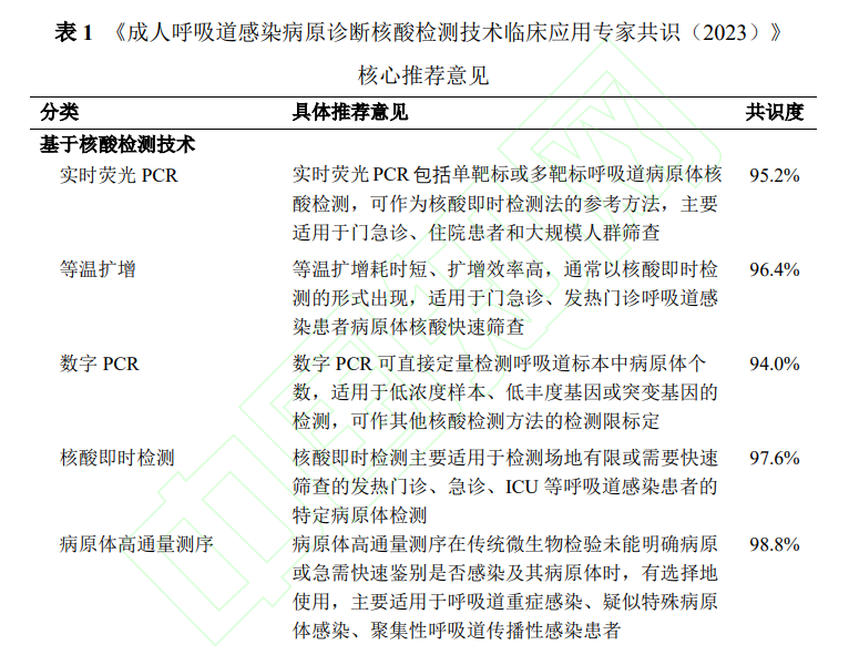 該共識(shí)參考國(guó)內(nèi)外指南及文獻(xiàn),分析了了實(shí)時(shí)熒光聚合酶鏈反應(yīng)技術(shù)、等溫?cái)U(kuò)增技術(shù)、數(shù)字PCR技術(shù)、核酸即時(shí)檢測(cè)技術(shù)和病原體高通量測(cè)序技術(shù)的臨床應(yīng)用場(chǎng)景、技術(shù)特點(diǎn)和性能驗(yàn)證要求,以及該類技術(shù)在成人急性上呼吸道感染、氣管支氣管炎、社區(qū)獲得性肺炎、醫(yī)院獲得性肺炎/呼吸機(jī)相關(guān)性肺炎、慢性阻塞性肺疾病急性加重、肺結(jié)核和免疫功能受損人群呼吸道感染中的應(yīng)用,以供臨床參考借鑒。