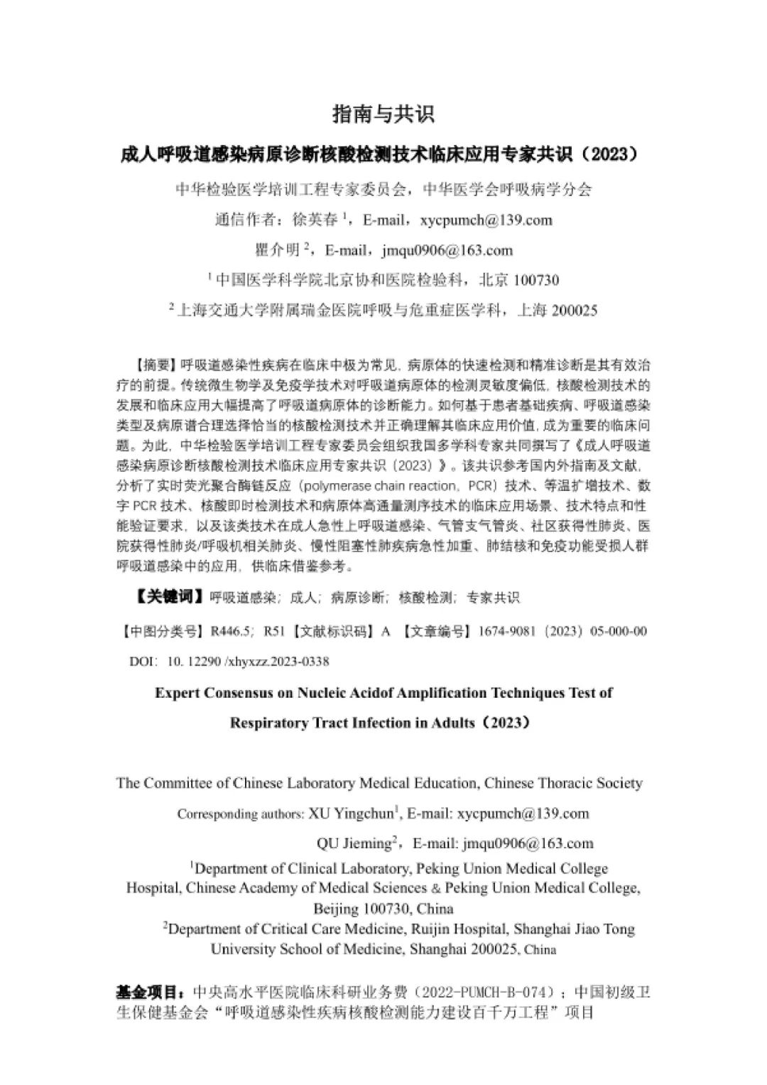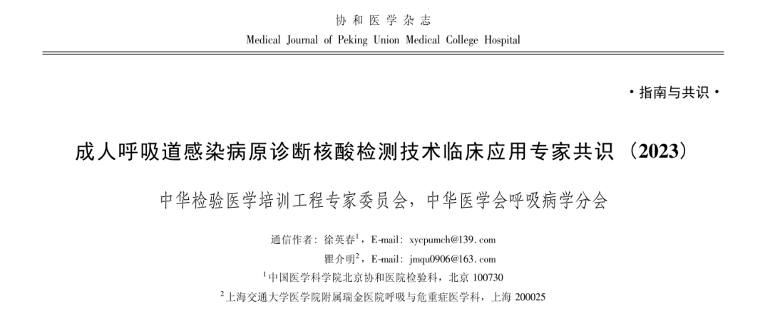近期,由中國(guó)醫(yī)學(xué)科學(xué)院北京協(xié)和醫(yī)院檢驗(yàn)科徐英春教授、上海交通大學(xué)附屬瑞金醫(yī)院呼吸與危重癥醫(yī)學(xué)科瞿介明教授為通信作者發(fā)布了《成人呼吸道感染病原診斷核酸檢測(cè)技術(shù)臨床應(yīng)用專家共識(shí)(2023)》。