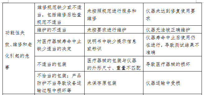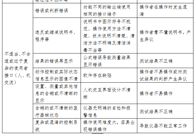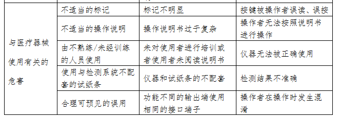 尿液分析儀的初始可預(yù)見性危害主要存在于產(chǎn)品設(shè)計(jì)、生產(chǎn)和使用環(huán)節(jié),風(fēng)險(xiǎn)分析至少包括表2內(nèi)容,企業(yè)還應(yīng)根據(jù)產(chǎn)品的自身特點(diǎn)確定其他危害。