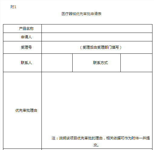 附:1.醫(yī)療器械優(yōu)先審批申請(qǐng)表