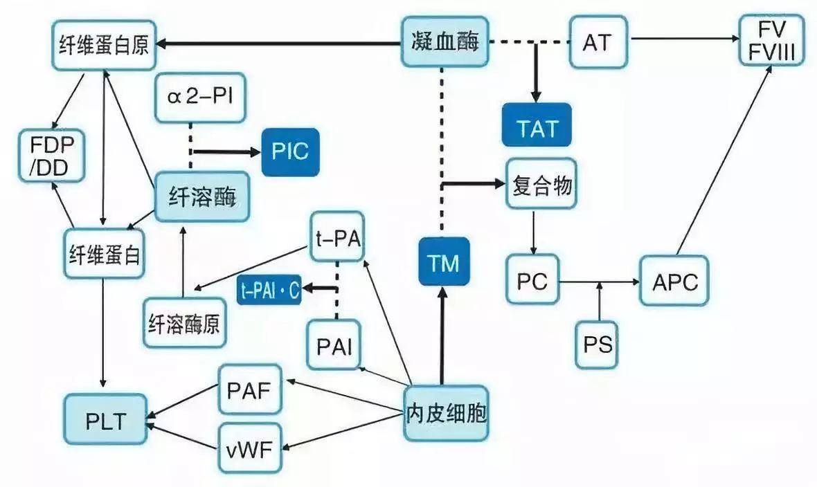 不孕癥、妊高癥:監(jiān)測TAT和PIC,并結(jié)合DD等指標(biāo)評價體內(nèi)凝血纖溶功能,制定抗凝治療方案;