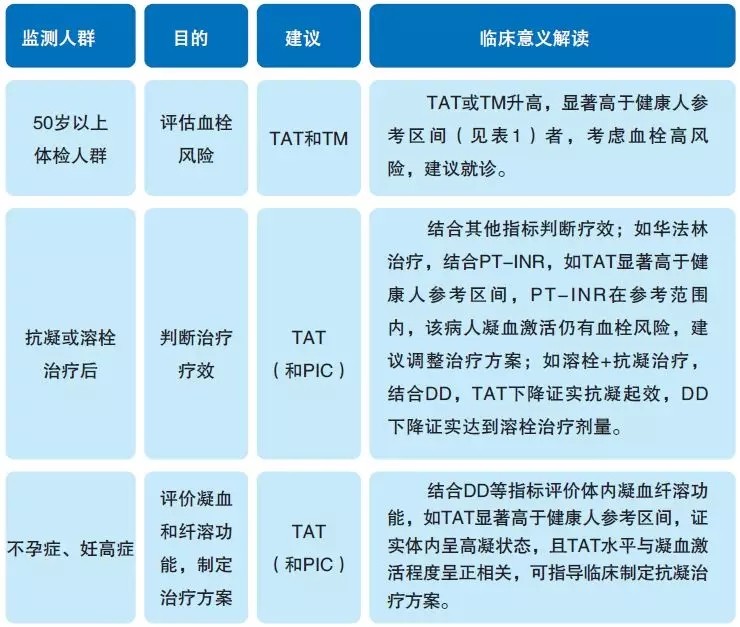 抗凝治療后:監(jiān)測TAT,并結(jié)合PT-INR、DD等指標(biāo)判斷治療療效;