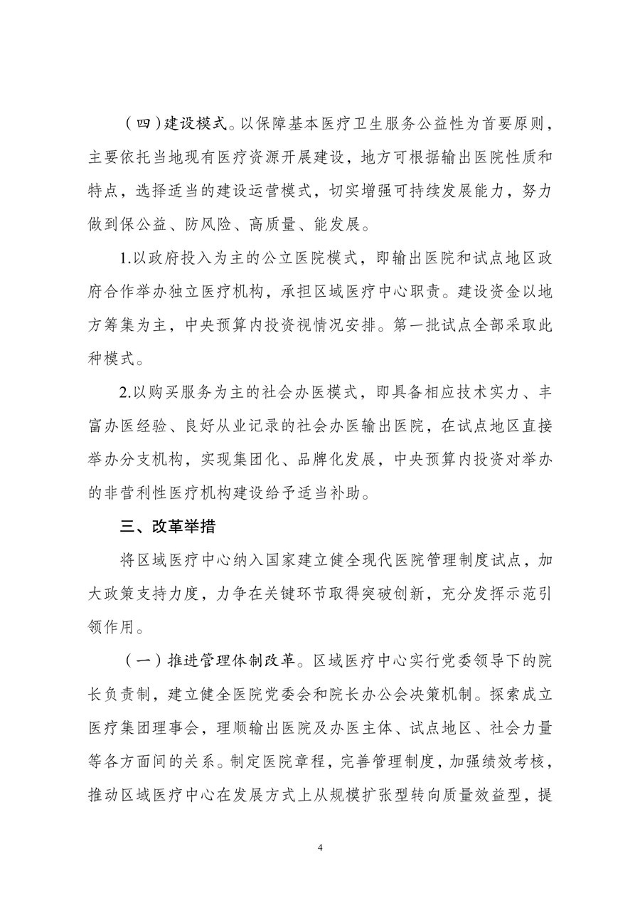 即輸出醫(yī)院和試點地區(qū)政府合作舉辦獨立醫(yī)療機構,承擔區(qū)域醫(yī)療中心職責。建設資金以地方籌集為主,中央預算內投資視情況安排。第一批試點全部采取此種模式。