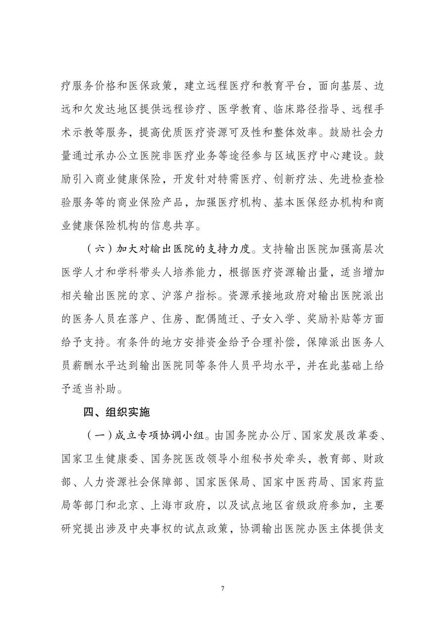 對于資源輸出醫(yī)院,《方案》提出適當增加相關輸出醫(yī)院的京、滬落戶指標。資源承接地政府對輸出醫(yī)院派出的醫(yī)務人員在落戶、住房、配偶隨遷、子女入學、獎勵補貼等方面給予支持。