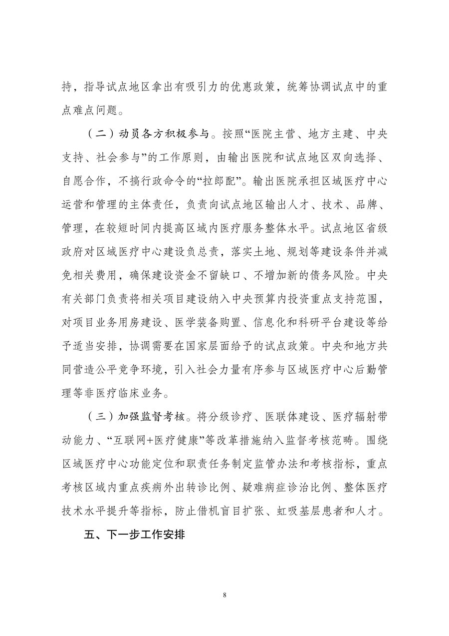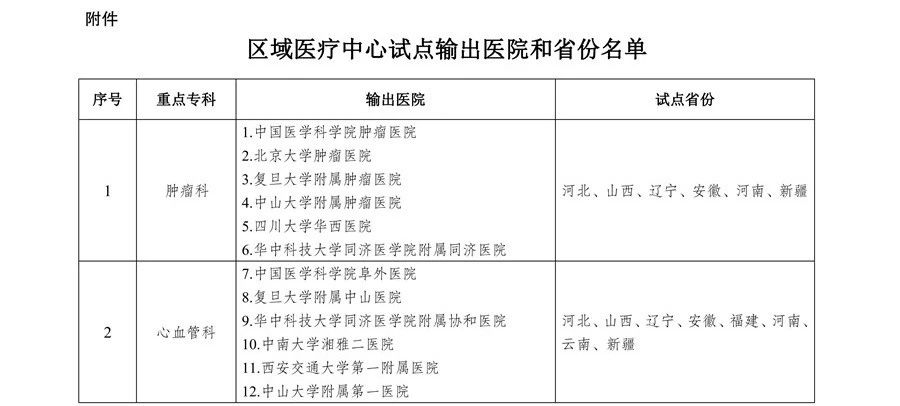 《方案》中明確了區(qū)域醫(yī)療中心建設的6個重點?萍8個試點地區(qū):
