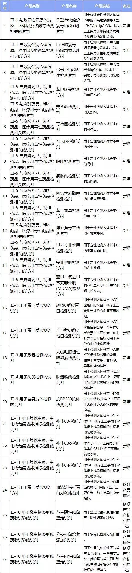 2019年12月新增和修訂的免于進(jìn)行臨床試驗(yàn)體外診斷試劑目錄