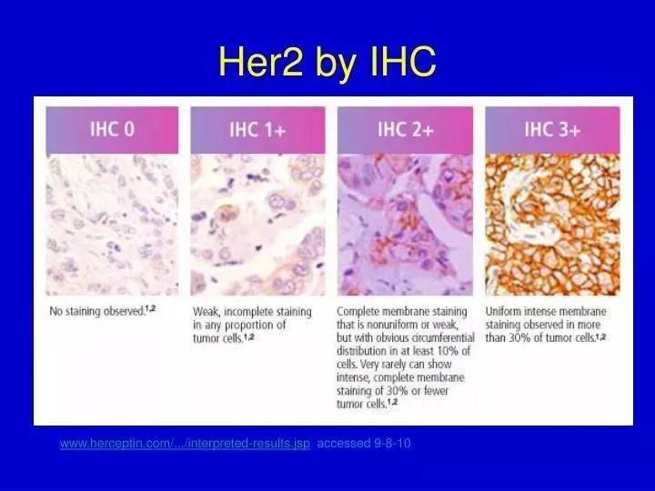 免疫組化及分子病理學(xué)方法在疾病診斷中僅僅起輔助治療的作用,而藥物病理學(xué)是用病理學(xué)的方法確定藥物治療的靶點、評價藥物治療的療效、預(yù)測藥物治療的反應(yīng),因此藥物靶點免疫組化屬“獨立診斷”。因此對于對照的設(shè)置、質(zhì)量的控制均需要更高的要求,如對試劑的要求,不同于一般的診斷試劑,應(yīng)按對藥物管理的要求操作。HER2蛋白著色3+者可作為臨床醫(yī)生建議患者接受曲妥珠單抗等藥物治療的依據(jù)。