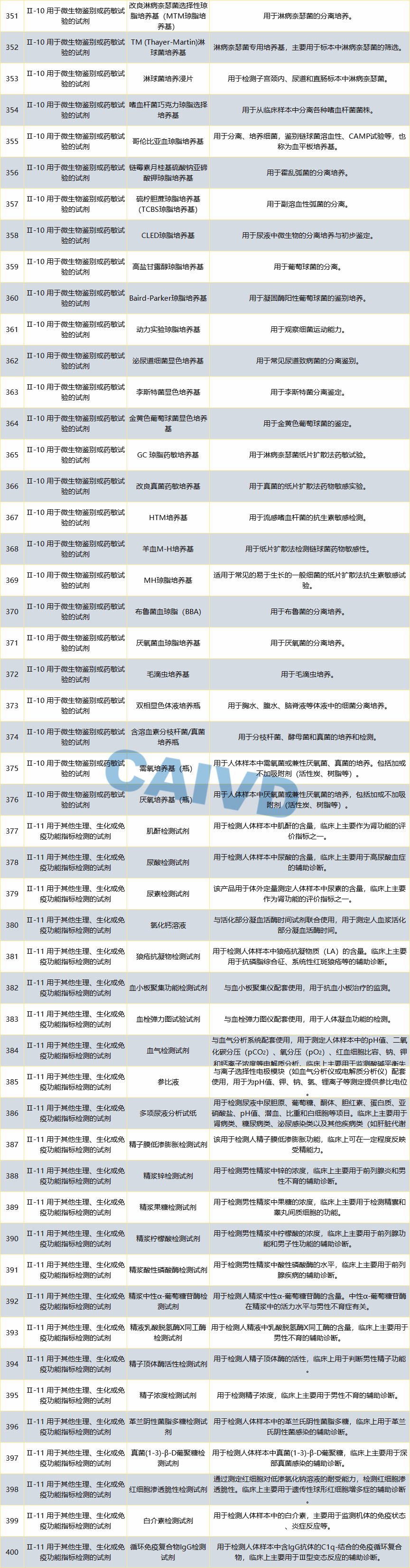 免臨床目錄中的產(chǎn)品如白介素檢測(cè)試劑,目錄用途描述為“用于檢測(cè)人體樣本中的白介素,主要用于監(jiān)測(cè)機(jī)體的免疫狀態(tài)、炎癥反應(yīng)等!,白介素種類(lèi)較多,其中產(chǎn)品聲稱(chēng)符合上述用途的各種白介素檢測(cè)項(xiàng)目均可作為免臨床產(chǎn)品進(jìn)行申報(bào),若產(chǎn)品有新的預(yù)期用途,如用于特定病原體感染的輔助診斷等用途則不屬于免臨床產(chǎn)品。