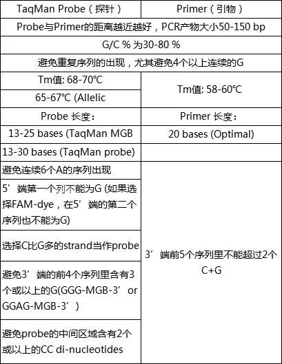 一些最基本的原則可以參考美國ABI(賽默飛)的PrimerExpress 3.0指南(表1)。