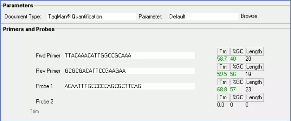 Taqman探針法熒光PCR通常采用二步法,即在94℃左右變性,60℃退火和延伸。所以,通常引物的Tm值設計在60±2℃,探針在70±2℃。