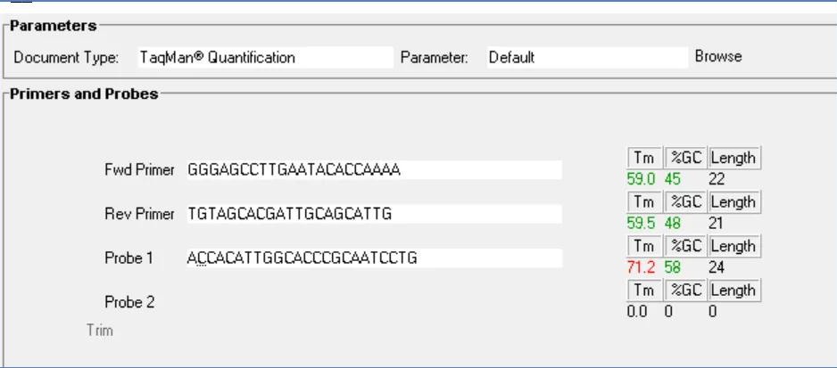 引物探針的設計原則中,最重要的是要避免假陰性(漏檢),同時保證特異性(避免假陽性),所以要選擇組內(nèi)(需要檢出的序列)保守(即盡量避開突變或采用簡并序列)、組間(對照序列)特異的區(qū)域,同時盡可能提高反應中引物和探針的利用效率。筆者認為參數(shù)的重要性依次是引物探針的位置、探針的發(fā)夾結構、探針對上游引物的相對位置、Tm值、引物發(fā)夾、二聚體。