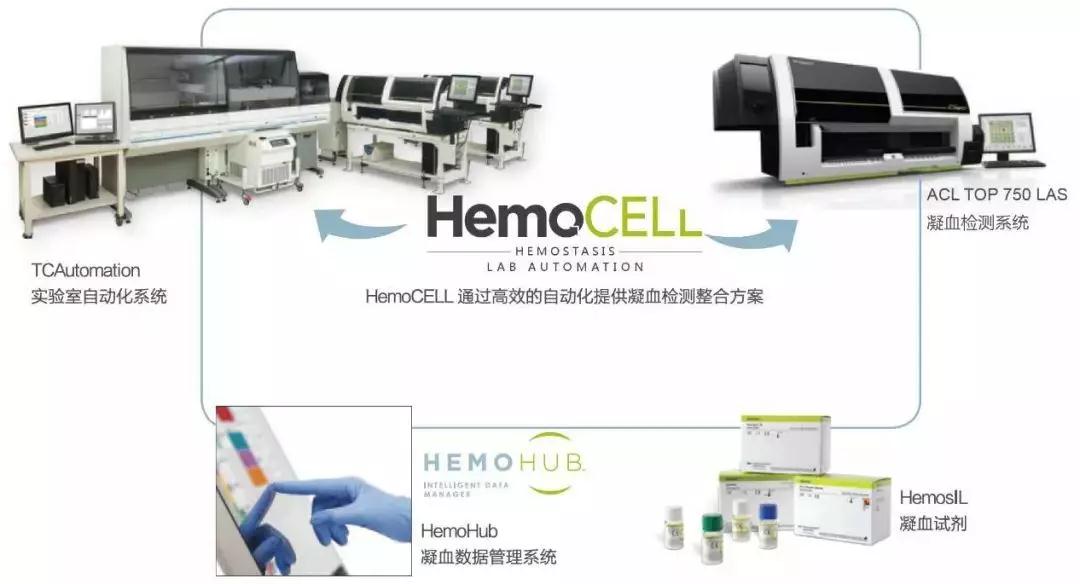 針對血凝市場,沃芬公司早在2015年就推出了HemoCELL自動(dòng)化流水線, HemoCELL全自動(dòng)凝血流水線由樣本前處理系統(tǒng)、ACL TOP 700 LAS全自動(dòng)凝血分析系統(tǒng)、HemosIL試劑系統(tǒng)和HemoHub智能數(shù)據(jù)管理系統(tǒng)組成。HemoCELL自動(dòng)化流水線系統(tǒng)是目前唯一可以全面提供HIL、樣本量以及凝塊核查三種分析前樣本質(zhì)量核查功能的凝血流水線系統(tǒng),完美監(jiān)測線上離心后樣本質(zhì)量,最大程度保障檢測結(jié)果準(zhǔn)確及時(shí),使得檢測流程標(biāo)準(zhǔn)化、自動(dòng)化、智能化程度進(jìn)一步提高。通過個(gè)性化的定制,從而幫助實(shí)驗(yàn)室實(shí)現(xiàn)檢測集中化管理,縮短TAT,提高檢測通量,降低分析前誤差,減少人為因素誤差,降低操作人員生物危害,保持凝血檢測技術(shù)的專業(yè)化。