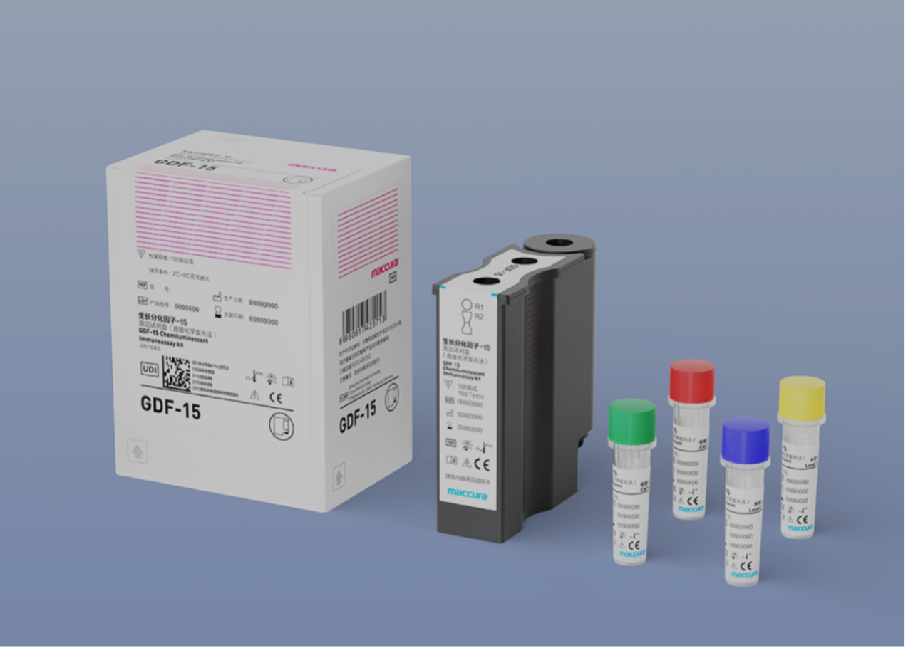 Maccura’s GDF-15 Chemiluminescence Immunoassay kit is used for the in vitro quantitative determination of GDF-15 concentration in human serum or plasma, and has passed the special approval from NMPA. The product has the advantages of high sensitivity, wide detection range, good marker stability, and strong anti-interference ability. At the same time, the test result can be obtained in 14 minutes, which meets the needs of emergency testing.