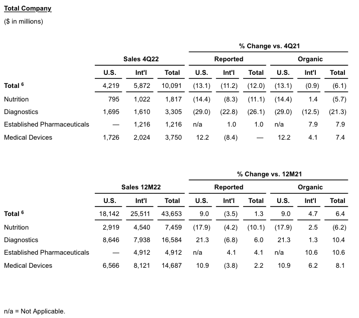 Source: Abbott Reports Fourth-Quarter and Full-Year 2022 Results; Issues 2023 Financial Outlook