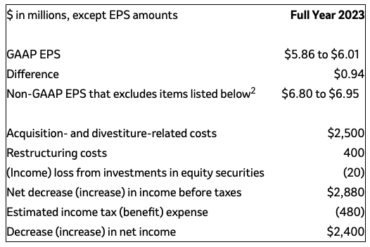 A reconciliation of anticipated 2023 GAAP EPS to non-GAAP EPS and the items excluded from non-GAAP EPS are provided in the table below.