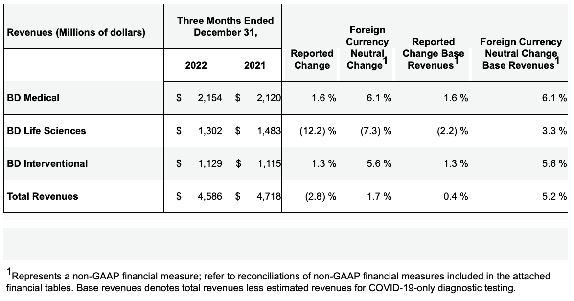 Source: BD Reports First Quarter Fiscal 2023 Financial Results