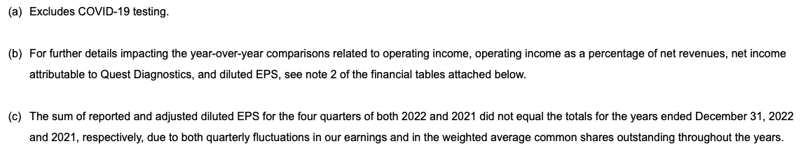 "Quest had another strong year in 2022, with base business revenues growing more than 6% in the fourth quarter, and 5% for the full year," said Jim Davis, CEO and President. "COVID-19 testing revenues declined as expected but still exceeded $1.4 billion in 2022.