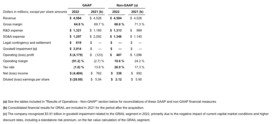 Illumina, Inc. (Nasdaq: ILMN) today announced its financial results for the fourth quarter and fiscal year 2022, which include consolidated financial results for GRAIL.