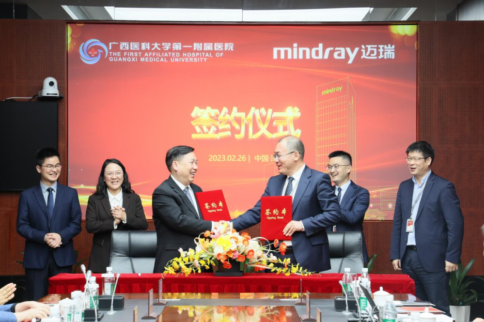 On February 26, Mindray and the First Affiliated Hospital of Guangxi Medical University held a signing ceremony at Mindray headquarters in Shenzhen and signed a strategic cooperation agreement. The two parties will carry out in-depth cooperation in medical-industrial integration and the transformation of scientific and technological achievements.