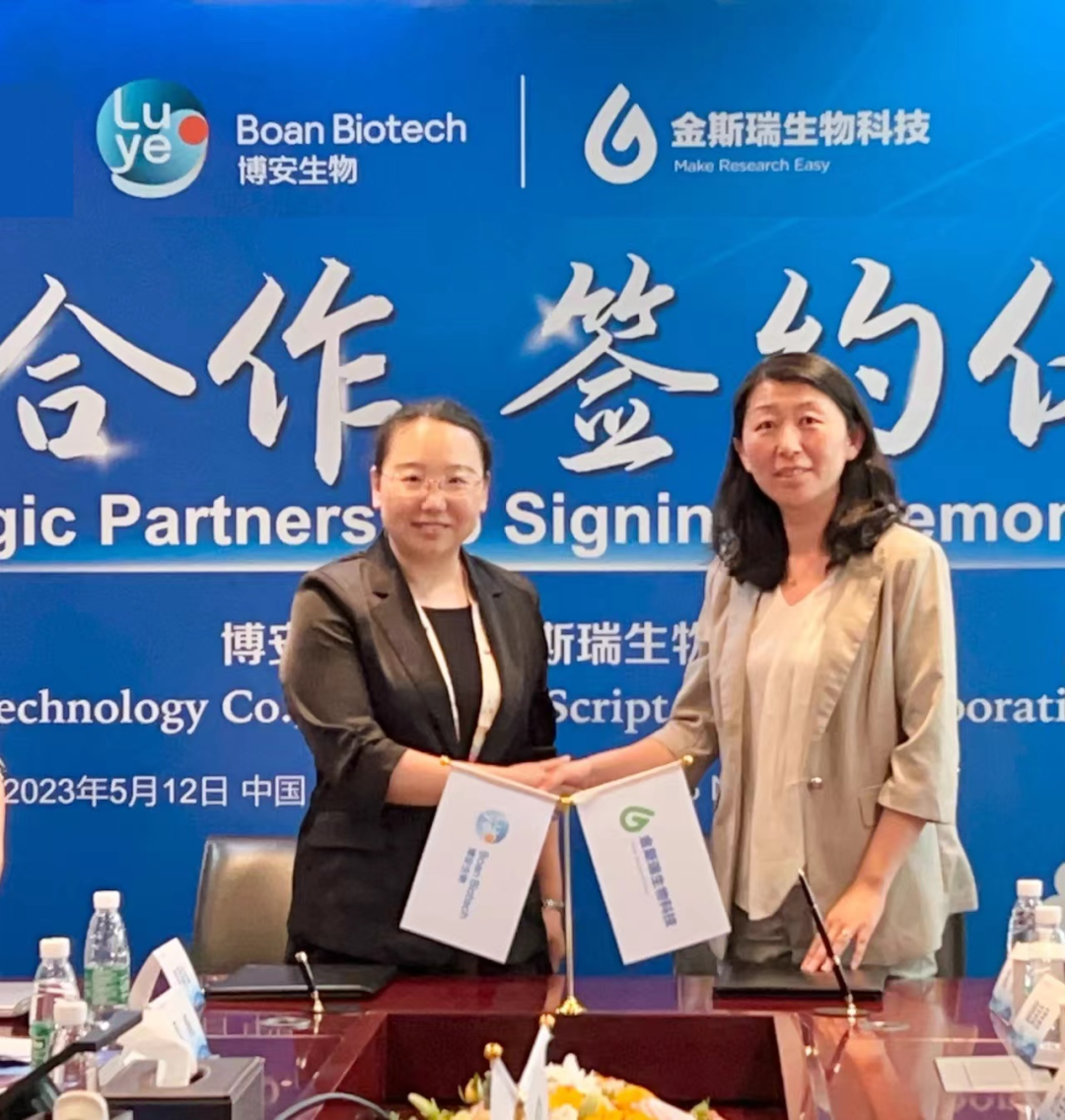 Based on this strategic cooperation, GenScript will pool its professional R&D and production team resources to provide comprehensive support for Boan's projects more efficiently and escort downstream cell therapy products with high standard reagent delivery requirements. Meanwhile, both parties will strengthen cooperation in all aspects of life science fields such as key raw materials for gene editing, nucleic acid synthesis, molecular biology services, peptide synthesis, customized protein expression and purification, and contribute wisdom and strength to accelerate the development of Boan's non-viral vector cell therapy products.