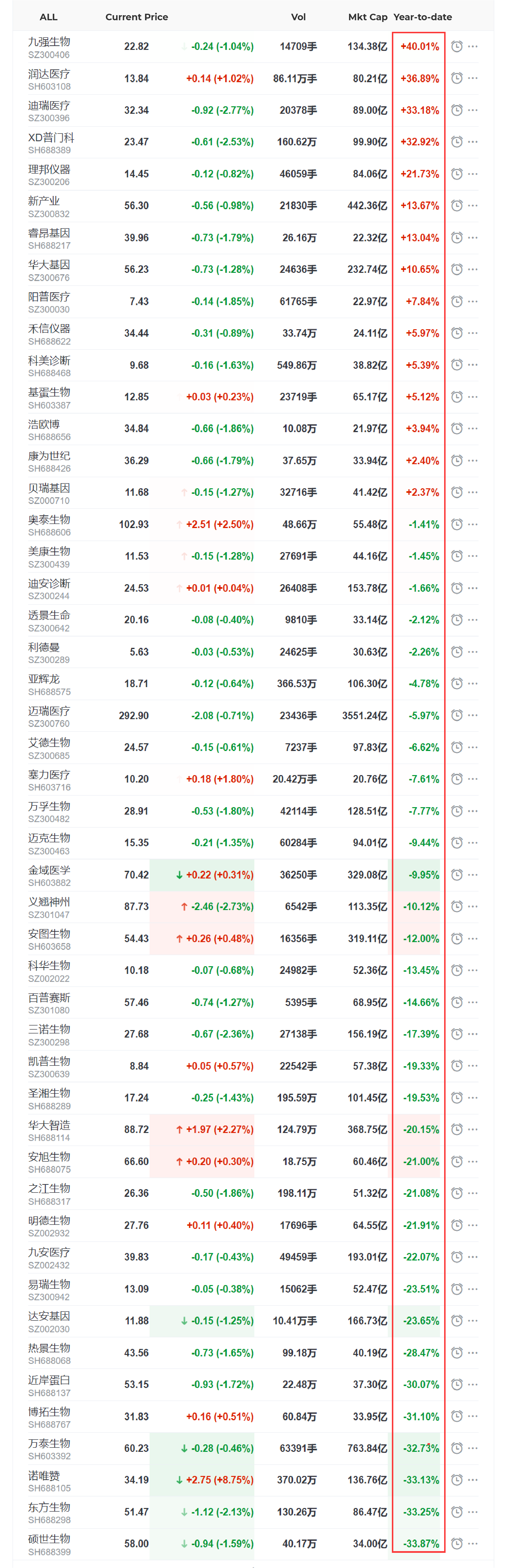 Most of the companies with large market capitalization declines are those whose COVID-19 testing business has accounted for a relatively large share of their performance in the past three years, such as andon, Orient Gene, Daan Gene, and BioPerfectus. Because of the gradual receding of COVID-19 dividend to the IVD industry, the company's business underperformed in the first quarter of 2023, which led to the decline in market valuation.
