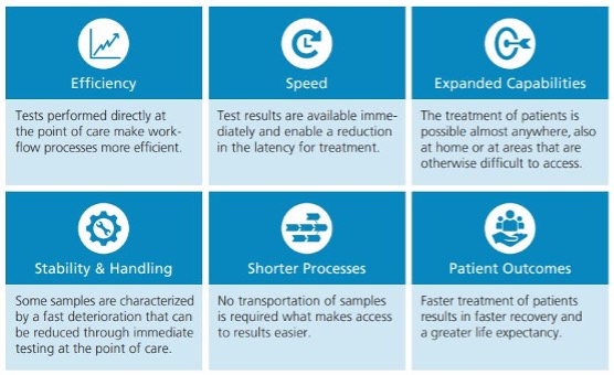 POCT has greater advantages over laboratory diagnostics in terms of sample pre-processing, instrument calibration, reagent preparation and operating requirements.