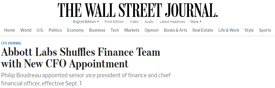Previous position: Abbott's Chief Financial Officer (appointed March 2020)