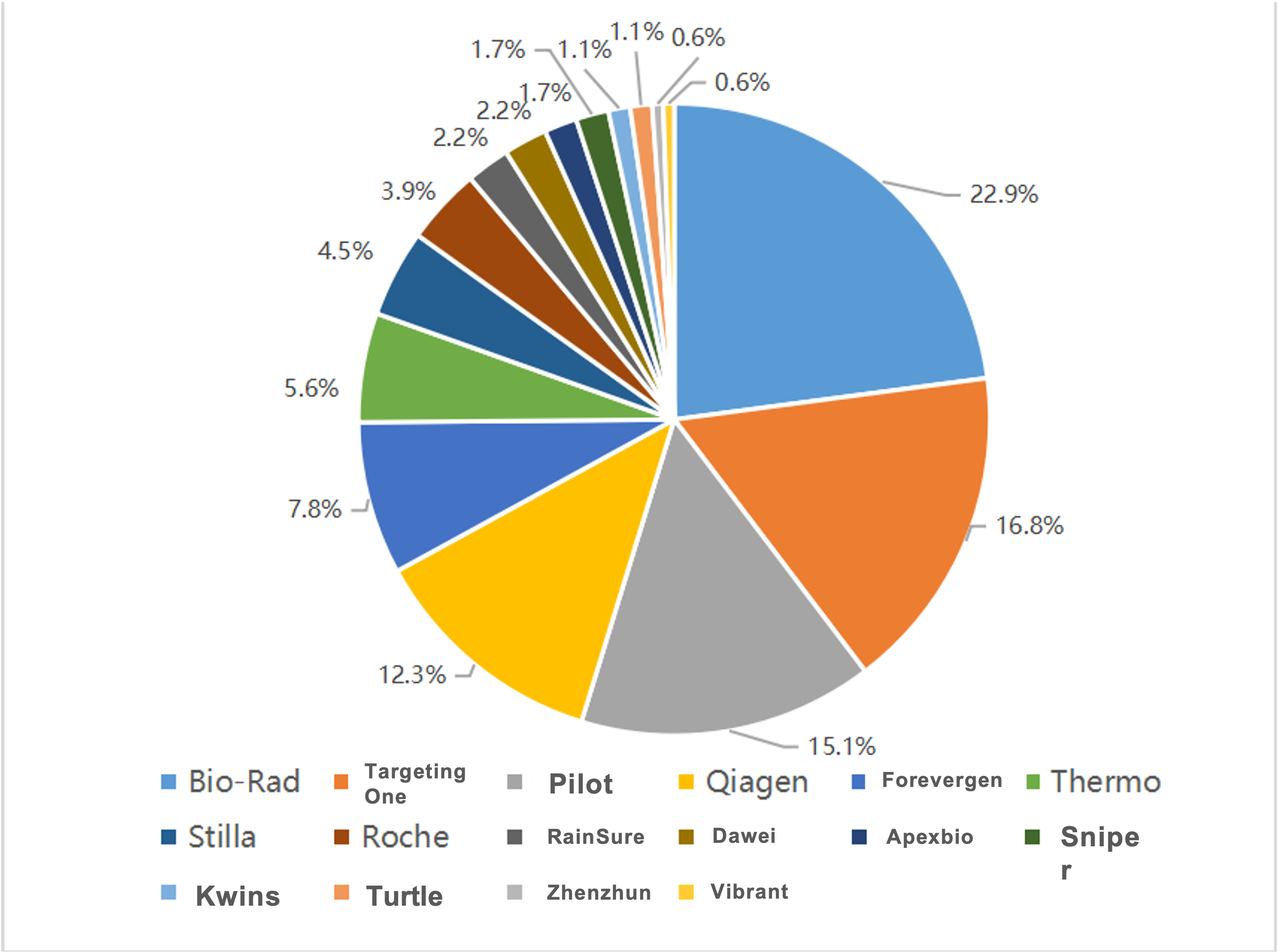 In China, IVD companies such as TargetingOne Corporation, RainSure Scientific, Pilot Gene, Turtle, Zhenzhun Bio, Kwins, Forevergen, Sniper have been born, and listed IVD companies such as Maccura, Snibe, and ABP have all invested in dPCR companies.