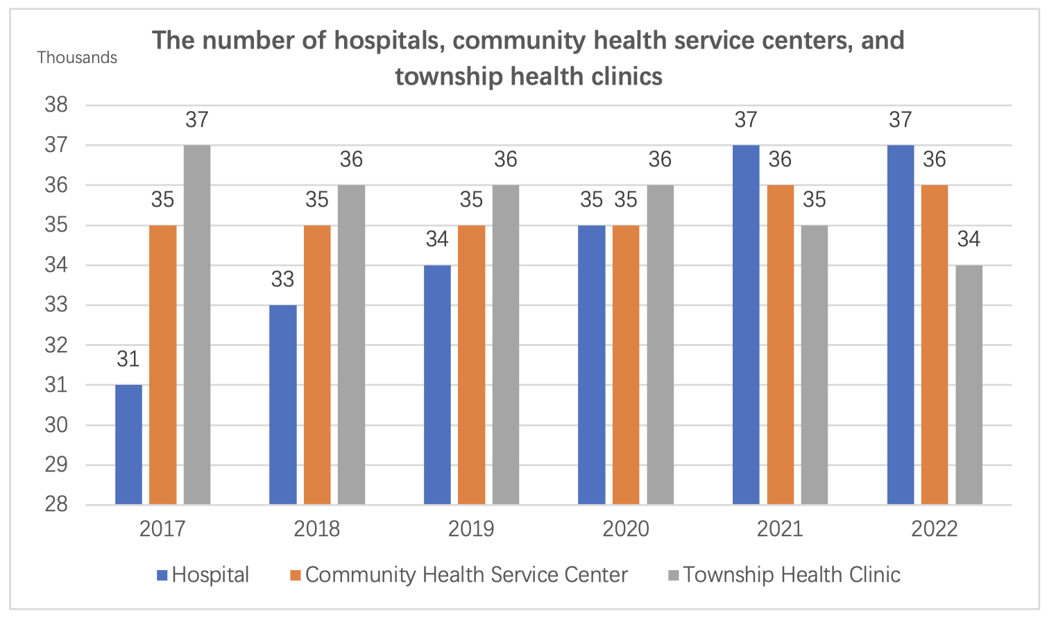 By the end of 2022, the total number of medical and health institutions nationwide reached 1,032,918, an increase of 1,983 compared to the previous year. This includes 36,976 hospitals, 979,768 primary healthcare institutions, and 12,436 specialized public health institutions. Compared to the previous year, there was an increase of 406 hospitals and 1,978 primary healthcare institutions. Across the country, there were a total of 13 categories of National Medical Centers and regional medical centers specializing in children's healthcare.
