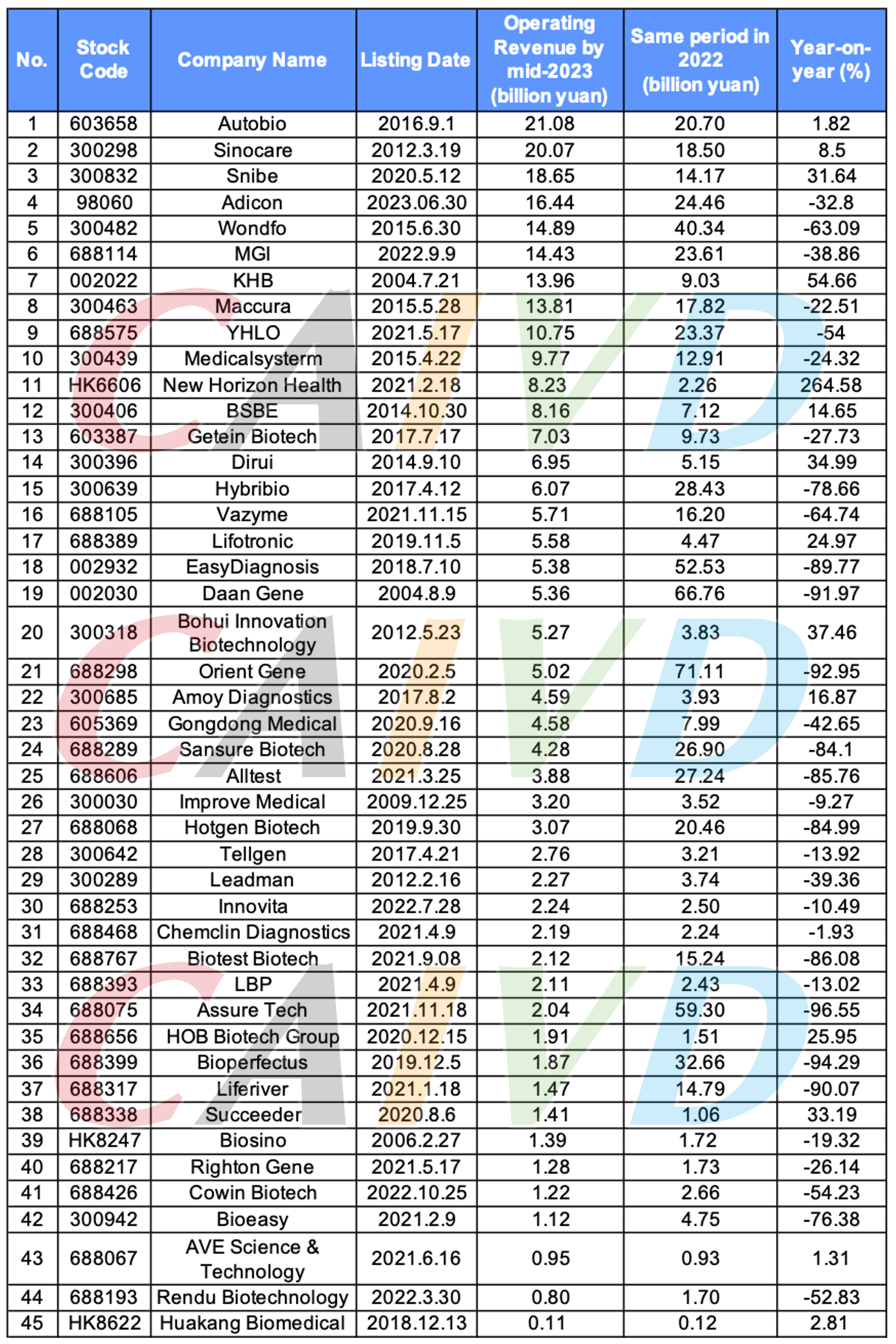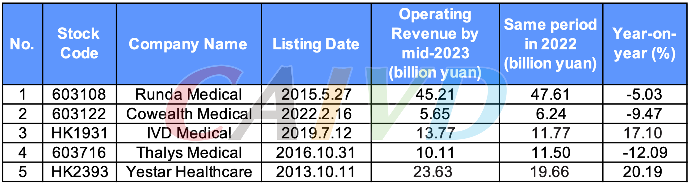 Listed companies with main IVD business in China have completed the disclosure of their financial results in the first half of 2023.