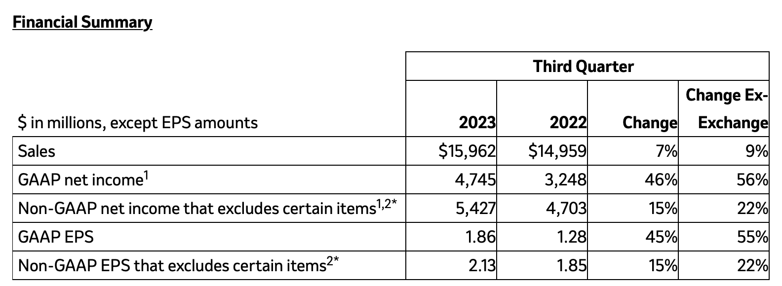 Non-GAAP EPS was $2.13 for the third quarter of 2023 compared with $1.85 for the third quarter of 2022.