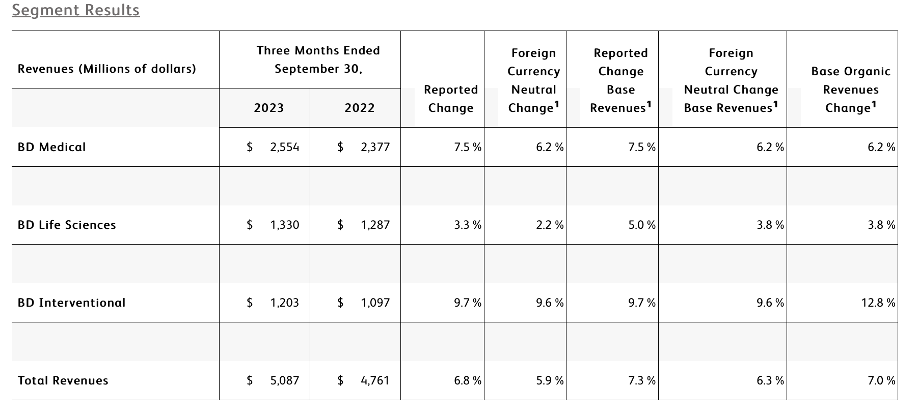 The BD Interventional segment includes the Surgery, Peripheral Intervention (PI), and Urology & Critical Care (UCC) business units. BD Interventional performance was driven by strong growth across the segment.