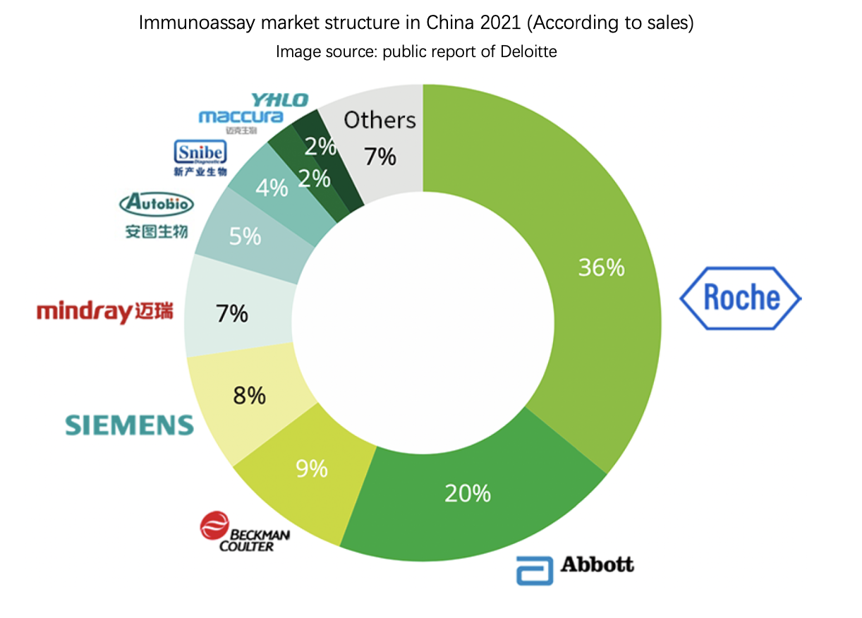 By rapid development of China's immunoassay, the market share of chemiluminescence has gradually expanded. Immunoassay diagnosis was already the largest sub-field of the market in China, currently accounting for about 25%.