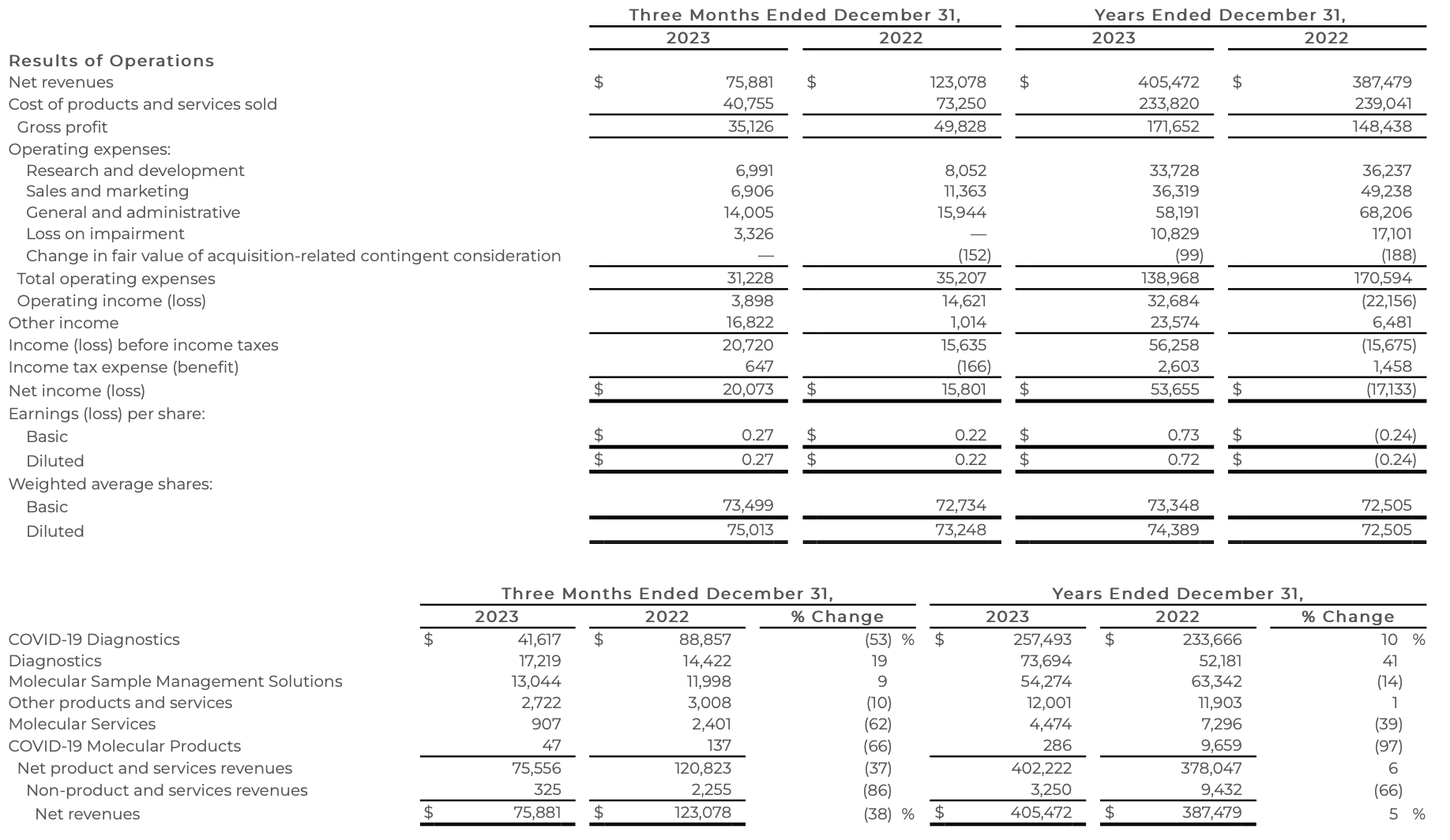 OraSure Technologies, Inc. (NASDAQ: OSUR), a leader in point-of-care and home diagnostic tests, sample management solutions, and microbiome laboratory and analytical services, today announced its financial results for the three months ended December 31, 2023.