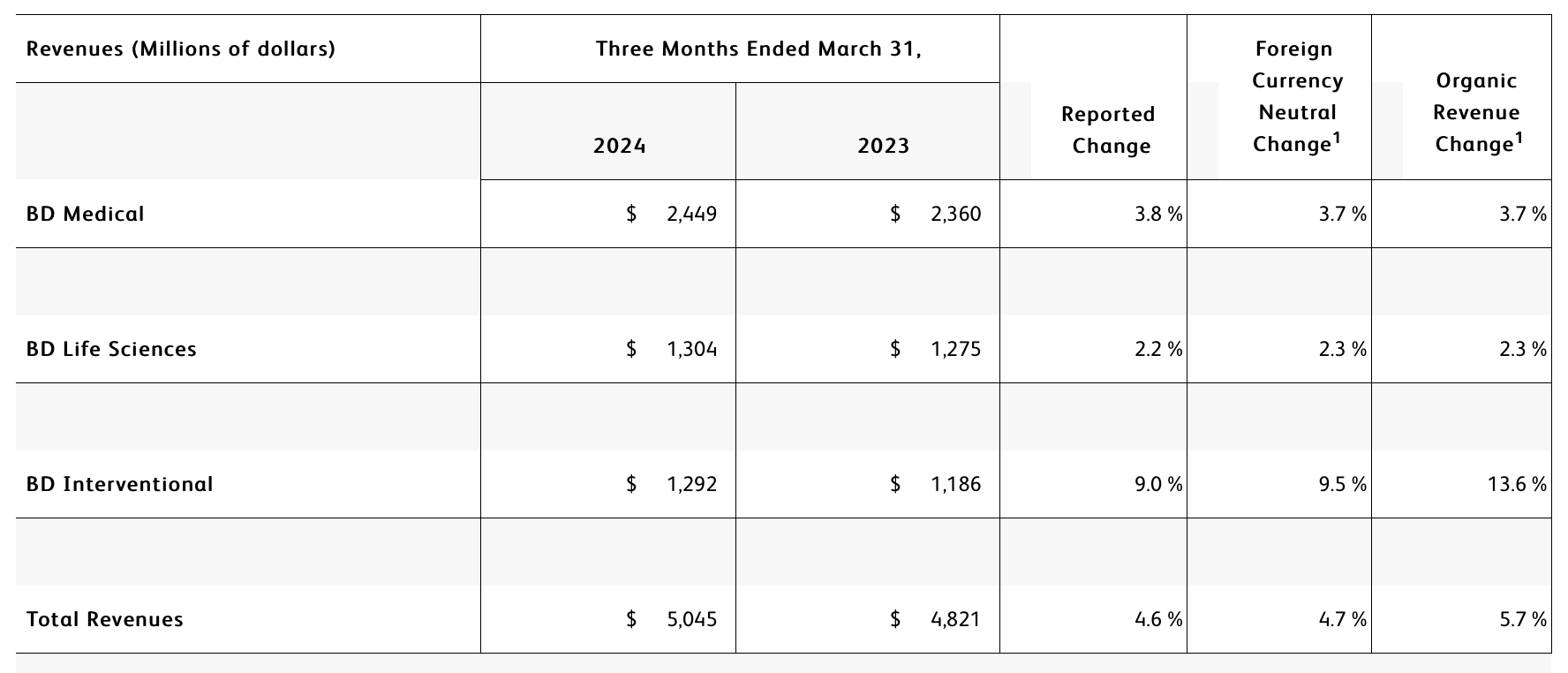 The BD Interventional segment includes the Surgery, Peripheral Intervention (PI), and Urology & Critical Care (UCC) business units. BD Interventional organic revenue growth was driven by performance across the segment.