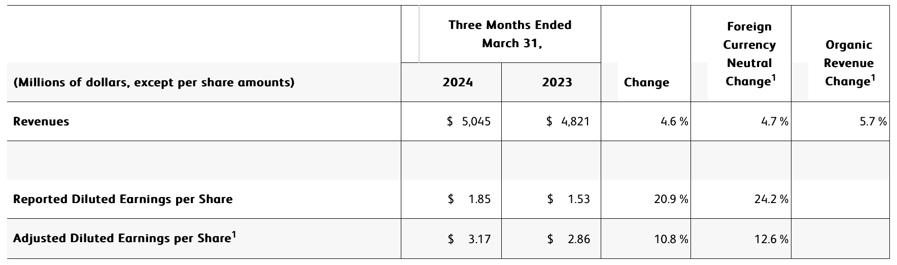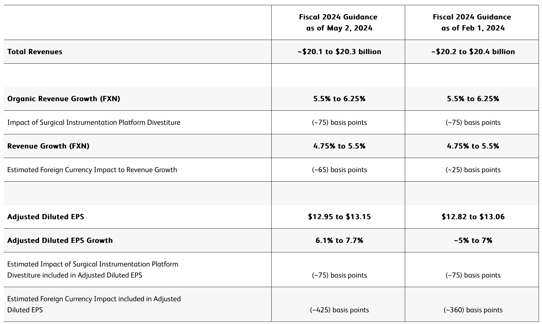 The company affirmed its fiscal 2024 organic revenue growth guidance range and increased its adjusted diluted earnings per share guidance range which reflects an increase of 11 cents at the midpoint.