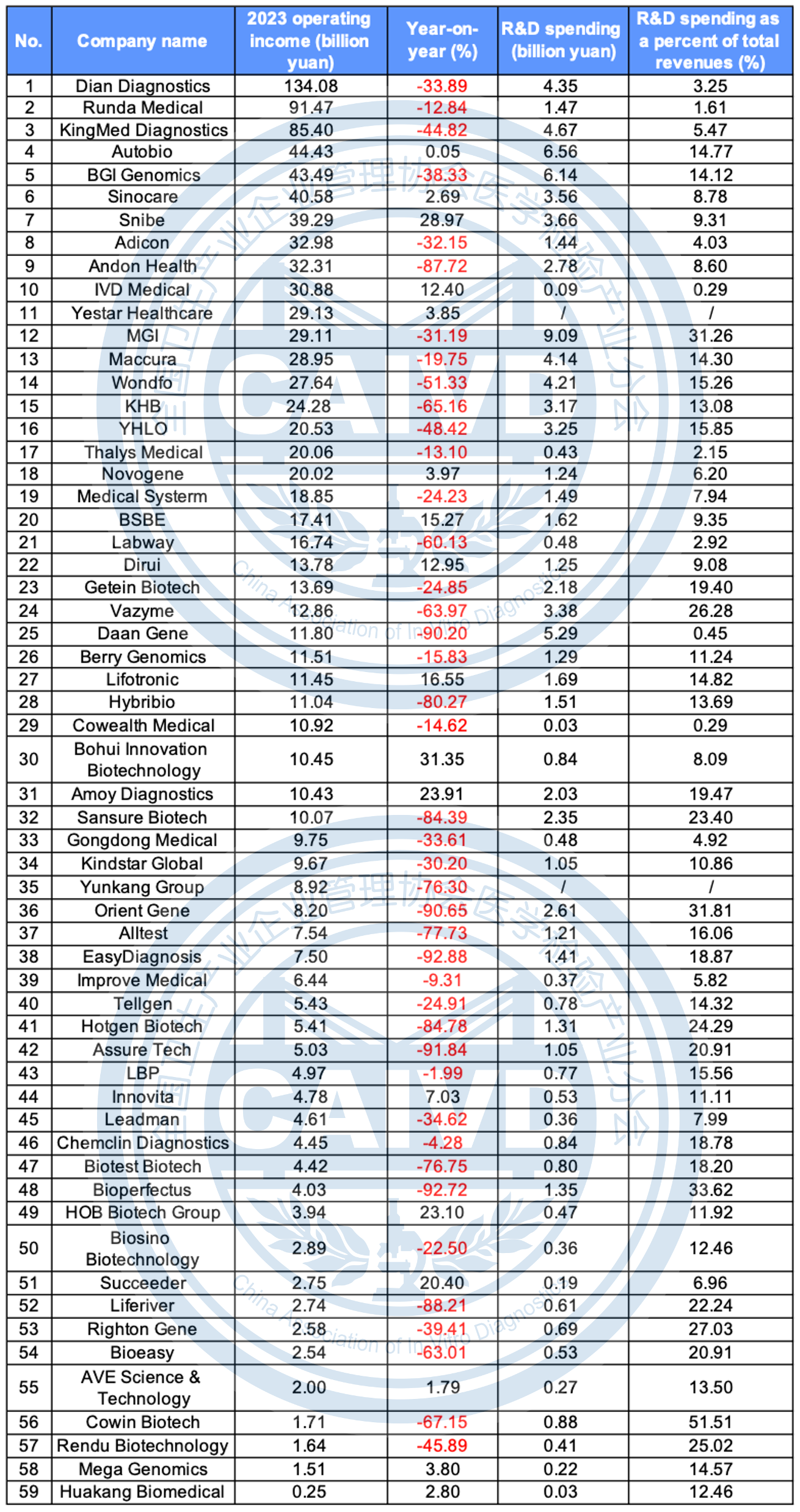 The top 3 in terms of revenue were Dian Diagnostics 13.41 billion, Runda Medical 9.15 billion, and KingMed Diagnostics 8.54 billion, but all of them declined compared to the same period in 2022.