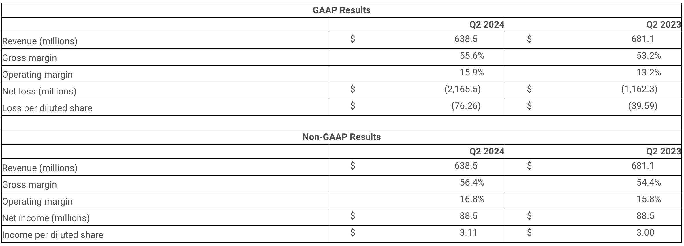 Non-GAAP gross margin was 56.4 percent for the second quarter of 2024 compared to 54.4 percent during the second quarter of 2023.