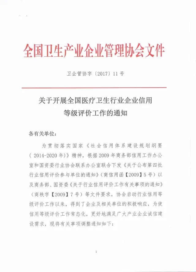 關(guān)于開展全國醫(yī)療衛(wèi)生行業(yè)企業(yè)信用等級評價(jià)工作的通知